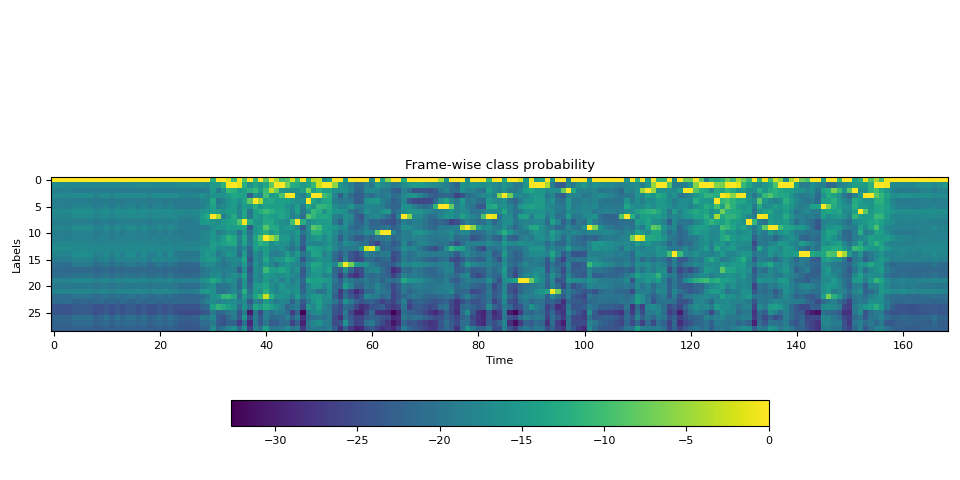其中 \(k\) 表示网格矩阵,\(p(t, c_j)\) 表示在时间步 \(t\) 处标签 \(c_j\) 的概率。\(repeat\) 表示 CTC 公式中的空白标记。(有关 CTC 算法的详细信息,请参阅 Sequence Modeling with CTC [distill.pub])